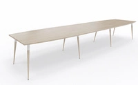 Stół " BECZKA "do sali konferencyjnej - szer 4800 gł 1100 wys 760 mm, blat gr 25 mm w kolorze Dąb Urban / st. Biały, nogi toczone buk naturalny