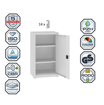 Szafa aktowa metalowa SBM 101 – 600 mm. Szafa pomieści 14 segregatorów. Kolor : RAL 7035 – jasnoszary. Szafa zgodna z wytycznymi RODO.