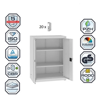 Szafa aktowa metalowa SBM 102 – 800 mm. Szafa pomieści 20 segregatorów. Kolor : RAL 7035 – jasnoszary. Szafa zgodna z wytycznymi RODO.