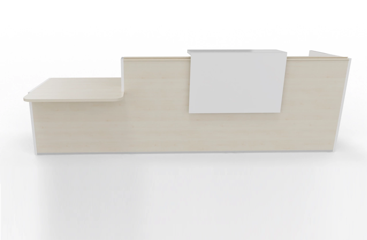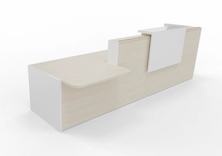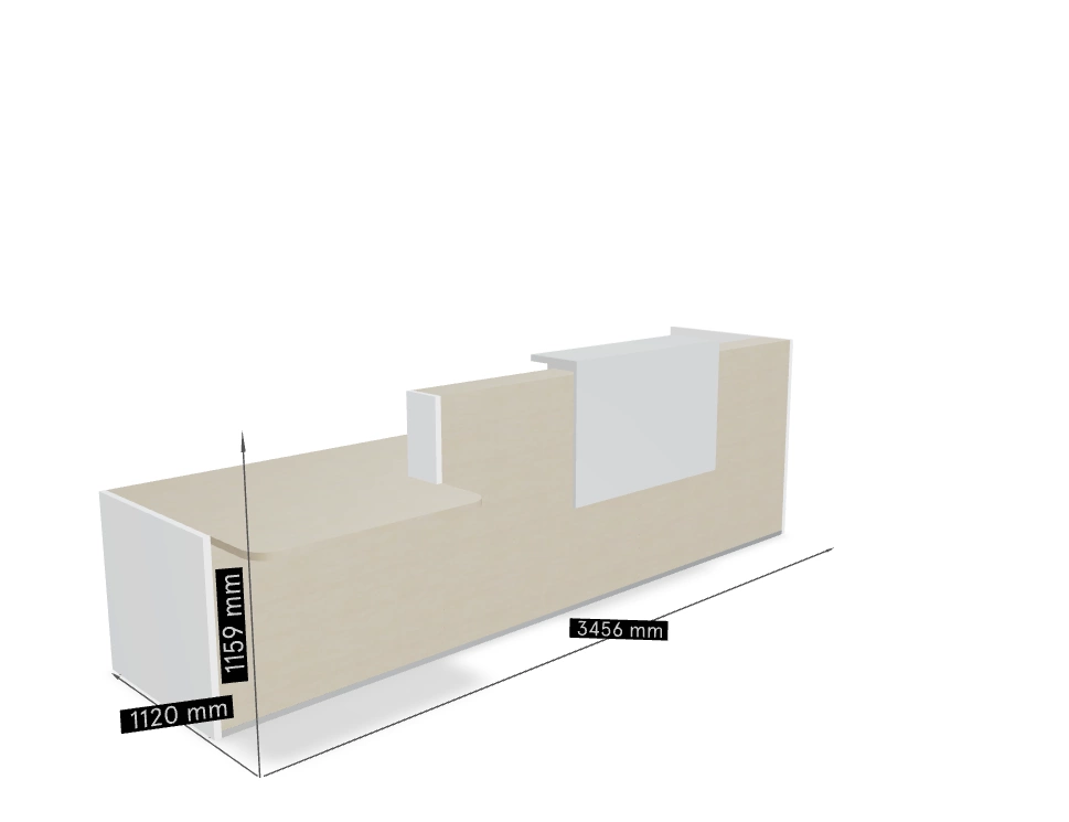 lada do recepcji TERA z niższym modułem- szer 3456 gł 1120 wys 1159 mm, w kolorze Brzoza Polarna z elementami Pastelowej Bieli