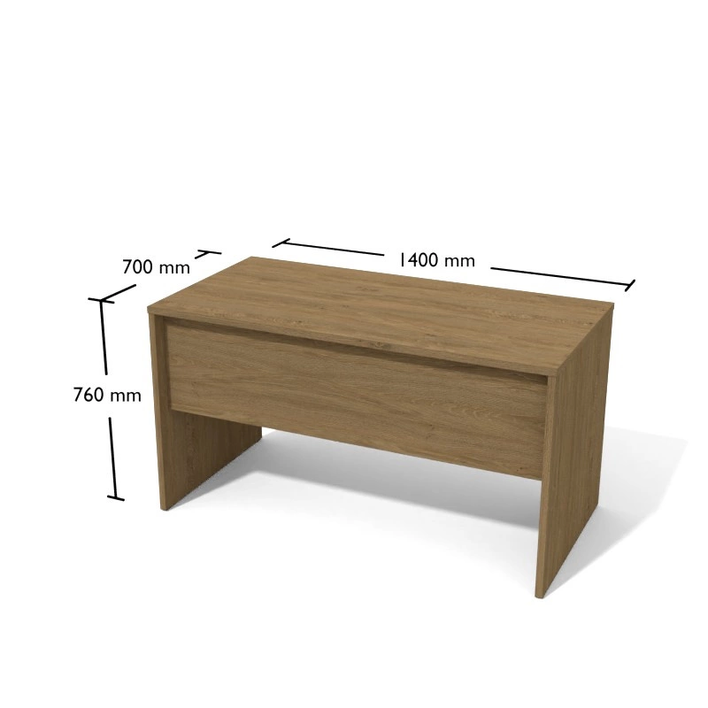 Biurko wykonane jest z płyty wiórowej dwustronnie melaminowanej w klasie E-1 nietoksycznej i bezzapachowej, oklejonej obrzeżem ABS odpowiadającym kolorze płyty.