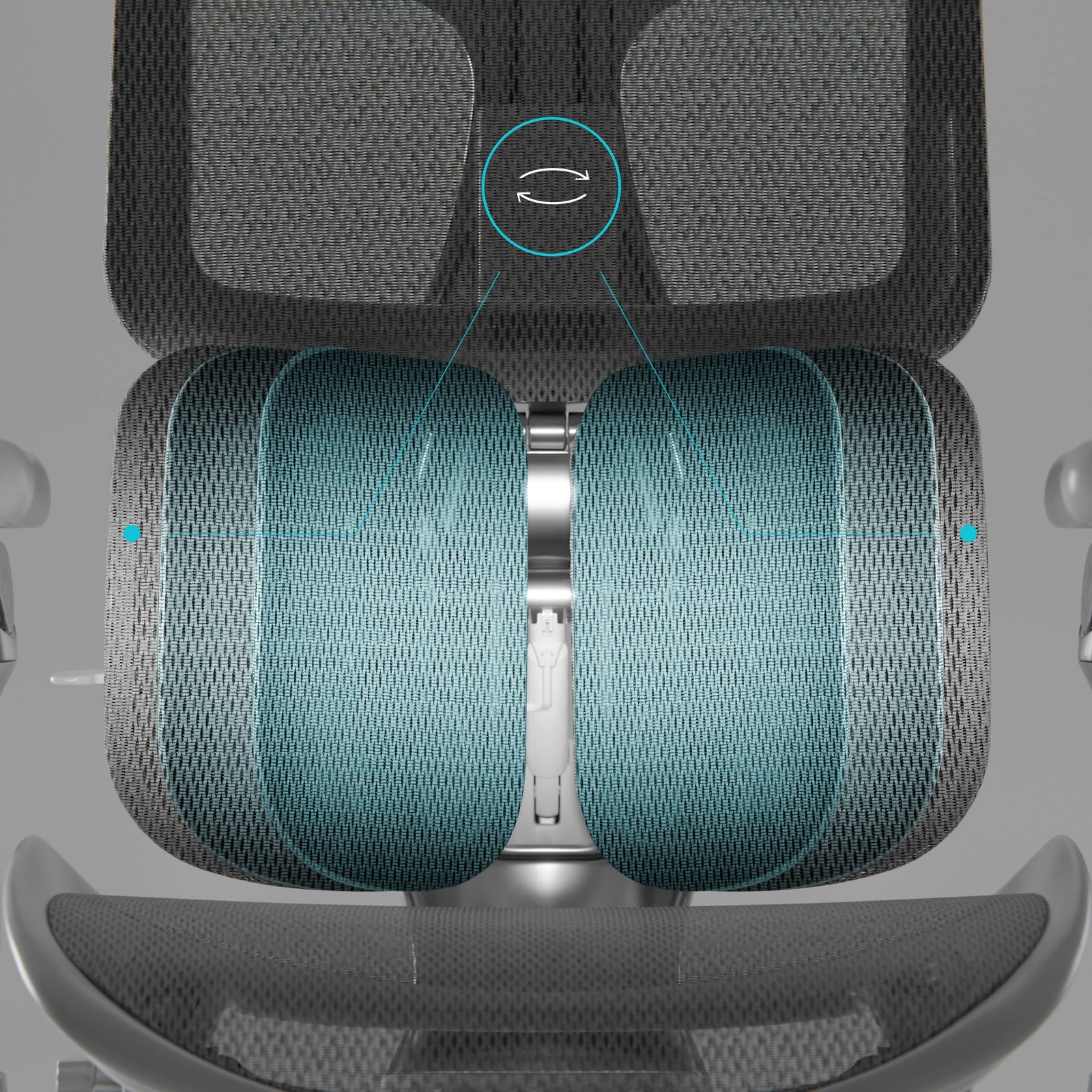 Pochylenie dolnej części oparcia Double-Wing™, by zapewnić maksymalne wsparcie odcinka lędźwiowego kręgosłupa.