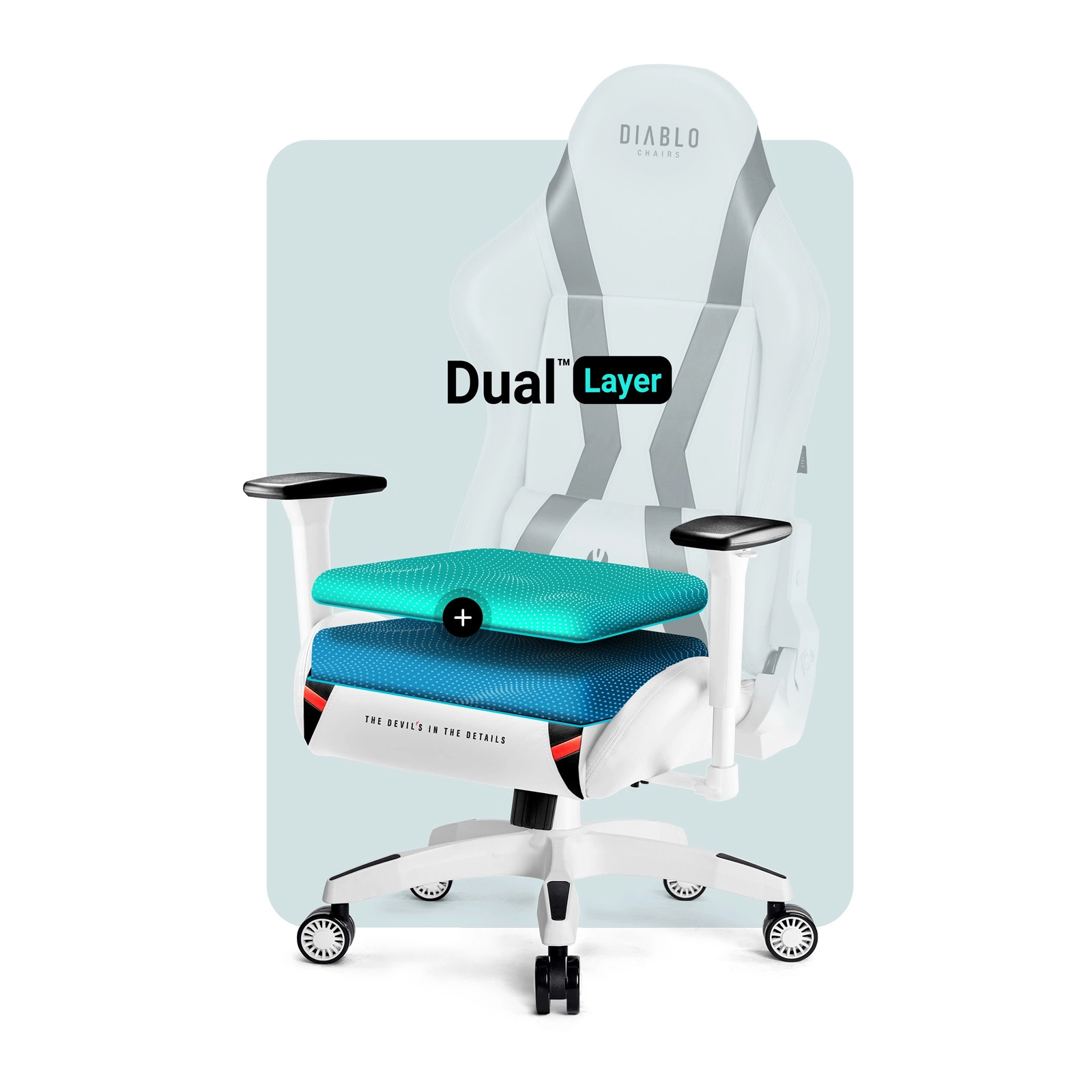 Ekoskórę podszyliśmy miękką pianką HR, dzięki której fotel jest wyjątkowo wygodny. Dodatkowo kubełkowe siedzisko Dual Layer™ wypełnia dodatkowa warstwa pianki, zapewnia więc jeszcze więcej komfortu.