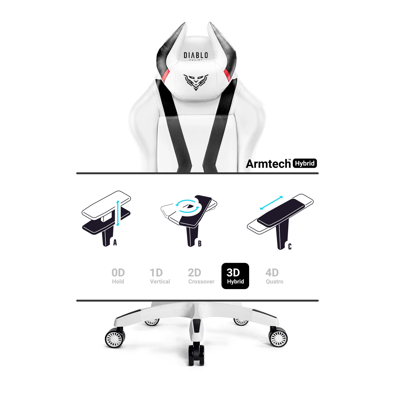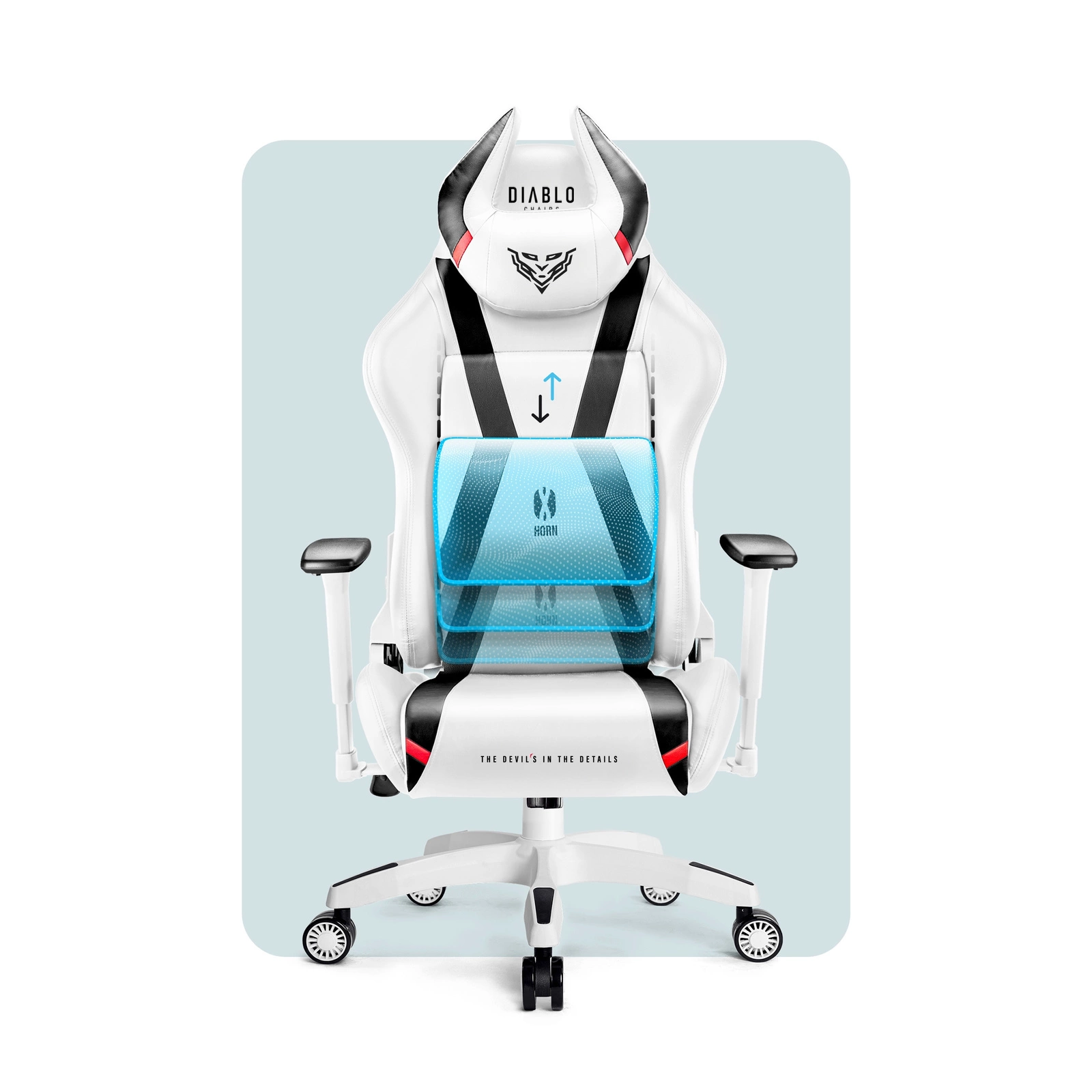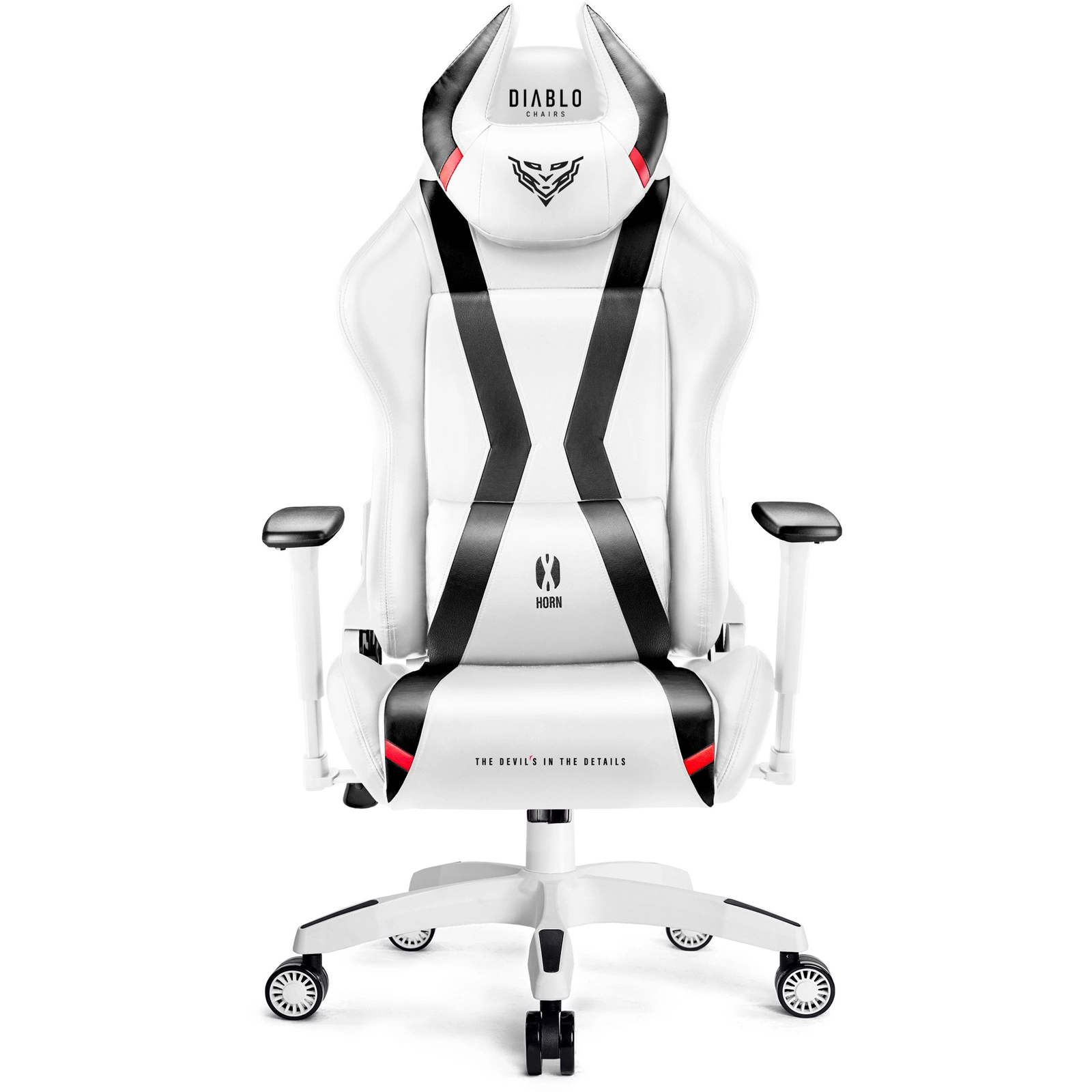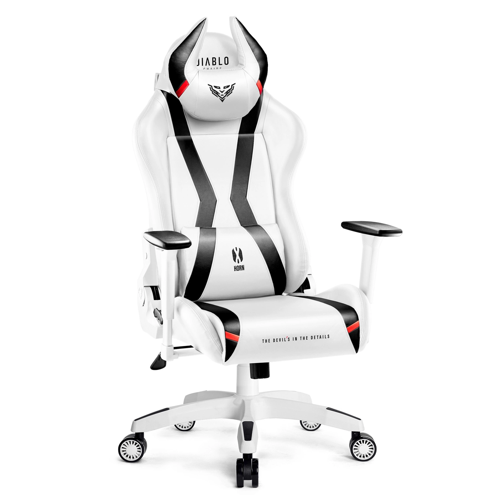 Wyrazista stylistyka sprawi, że Diablo X-Horn napełni każdy pokój lub gabinet charakterystycznym klimatem. Sportowa sylwetka, śnieżna biel gładkiej tapicerki i oryginalne detale sprawią, że Twój gamingowy setup spektakularnie się odmieni.