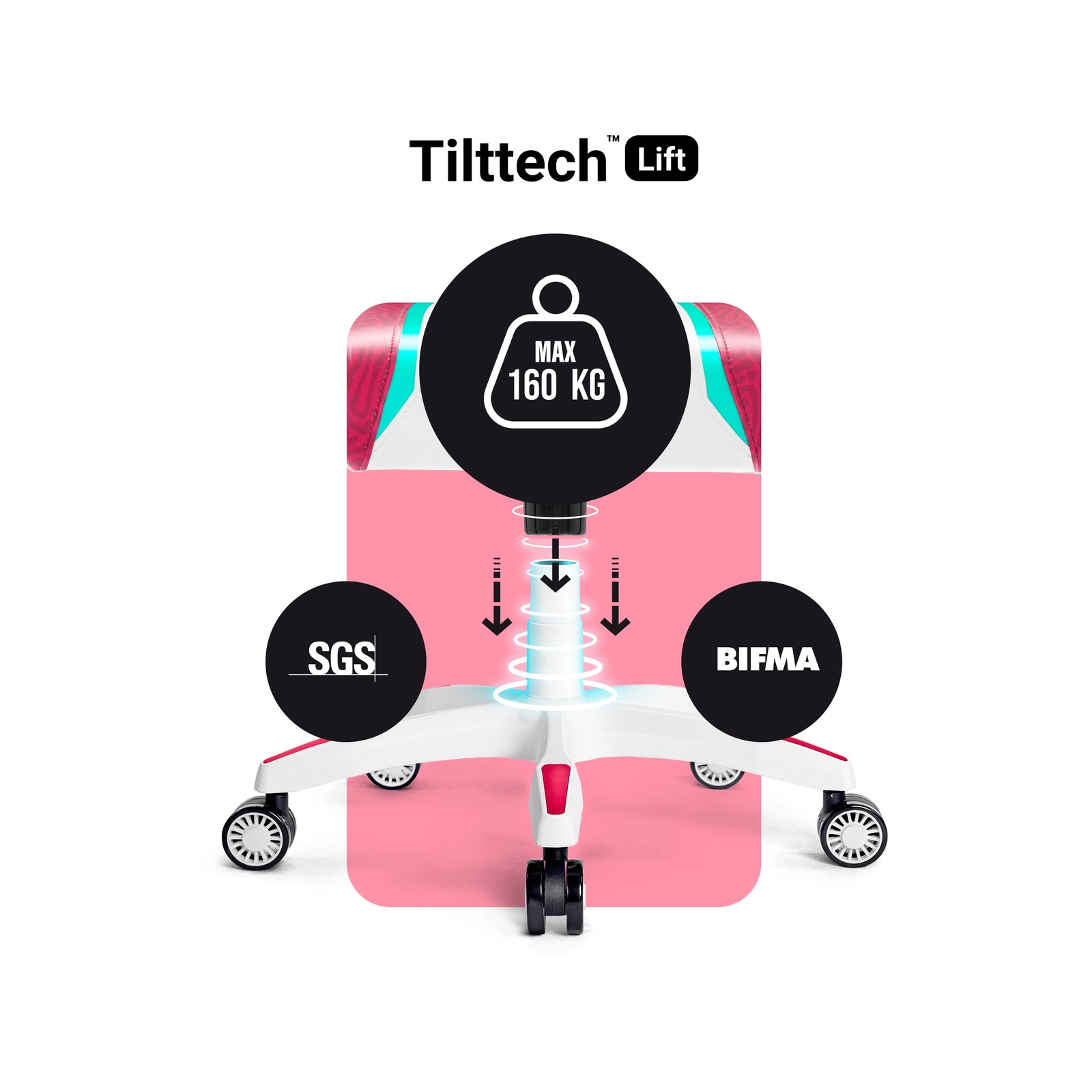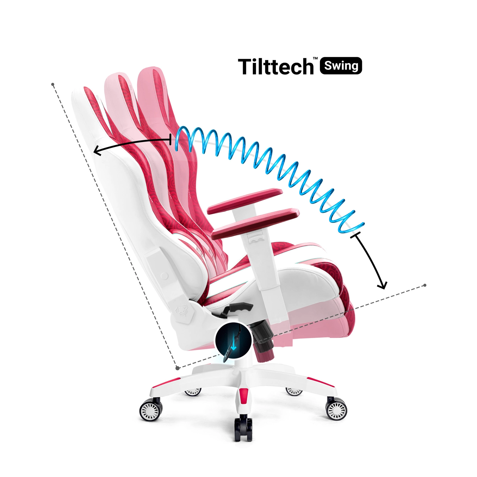 Oparcie możesz rozłożyć nawet do 140° i zablokować w dowolnym punkcie z mechanizmem Tilttech™ Gear, a system Tilttech™ Swing umożliwi Ci bezpieczne i relaksujące bujanie się podczas siedzenia. Nasz fotel gamingowy to pewność ergonomii i niekończącej się wygody.