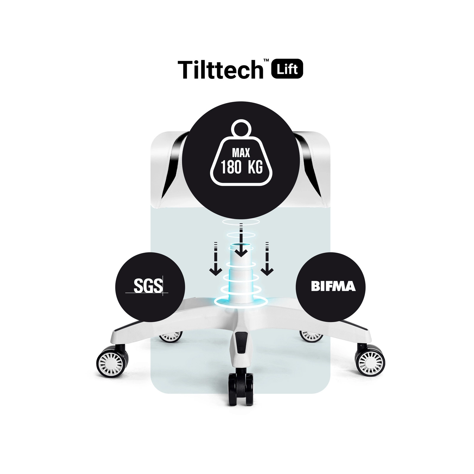 Regulacja Tilttech™ Butterfly pozwoli Ci w łatwy sposób dopasować najodpowiedniejszą wysokość siedziska. Zyskasz dzięki temu odpowiednią pozycję, z którą jeszcze lepiej dopasujesz sylwetkę do poduszki lędźwiowej oraz zagłówka.