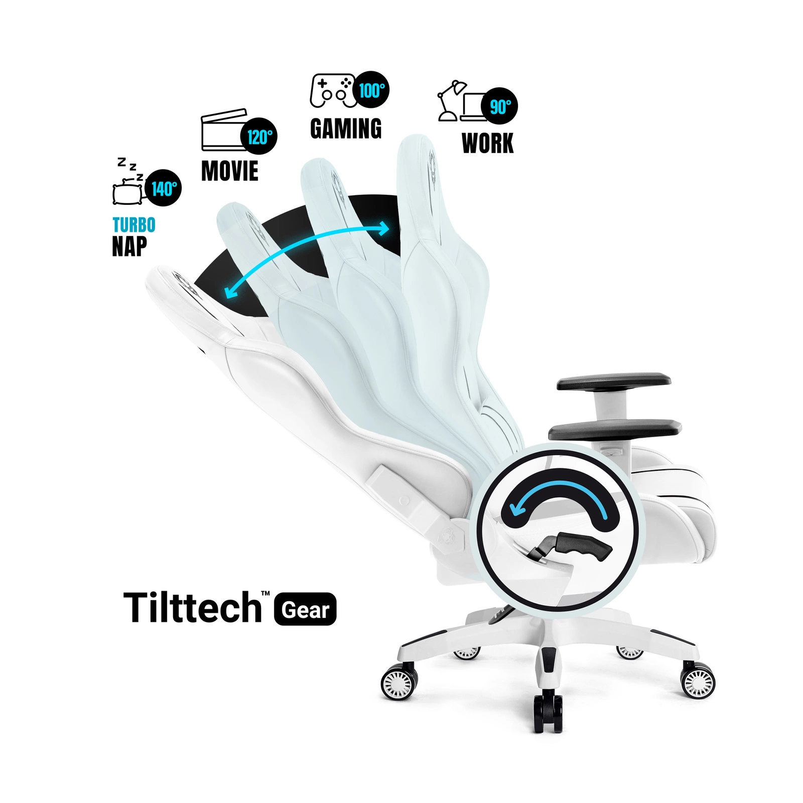 Mechanizm Tilttech™ Swing umożliwia dodatkowo relaksujące bujanie, a oparcie posiada funkcję rozłożenia nawet do 140° i zablokowania w preferowanym punkcie.