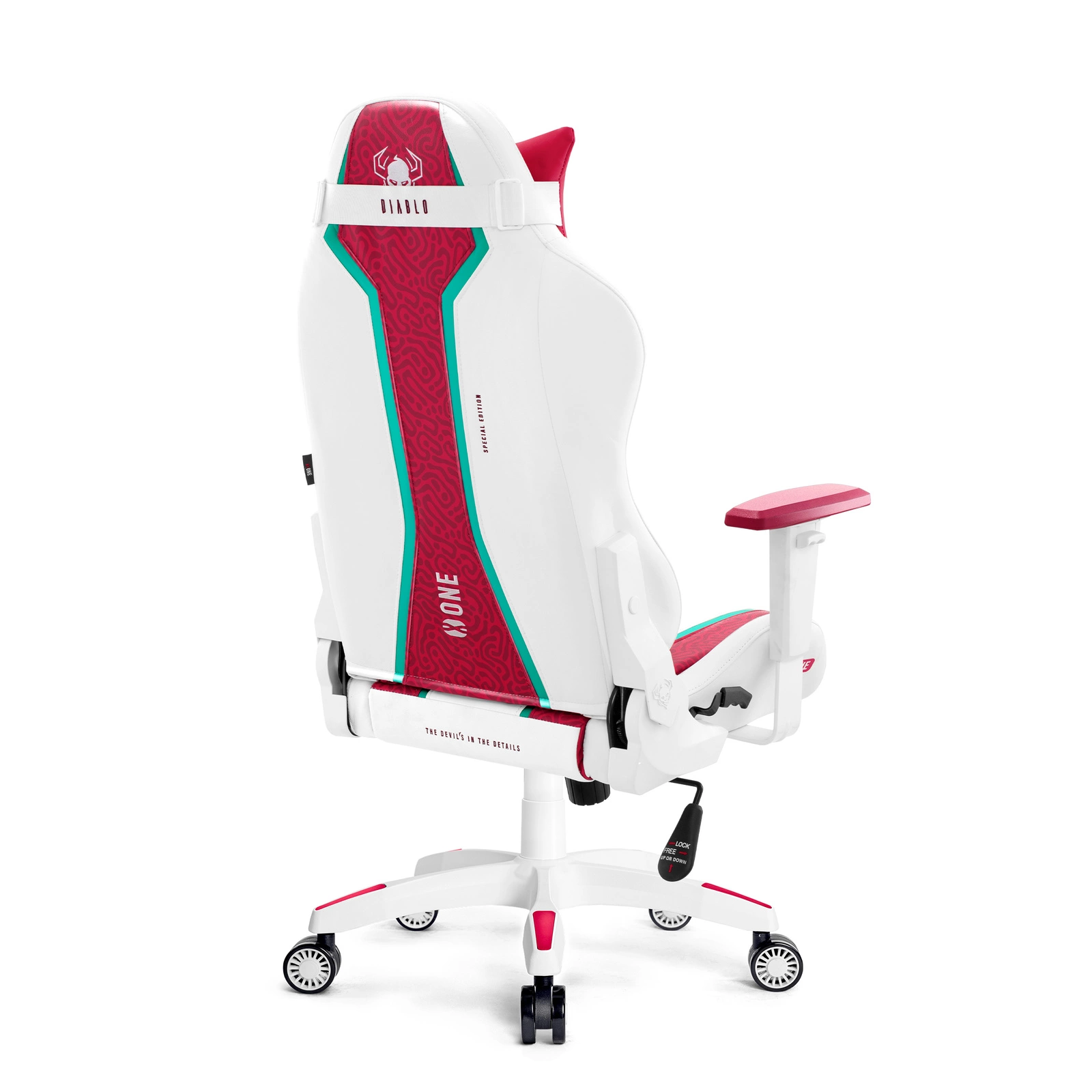 Wyrazisty róż i śnieżną biel gładkiej tapicerki połączyliśmy z muskularną, kubełkową sylwetką. Do tego wyraziste logotypu Diablo, maskownice i charakterystyczne przeszycia – tak prezentuje się siła stylistyki OneVision™ Design. Postawiliśmy także na niezawodną jakość wykorzystanych materiałów. Diablo X-One spełnia najwyższe standardy wykonania, co potwierdza certyfikat wytrzymałości BIFMA.