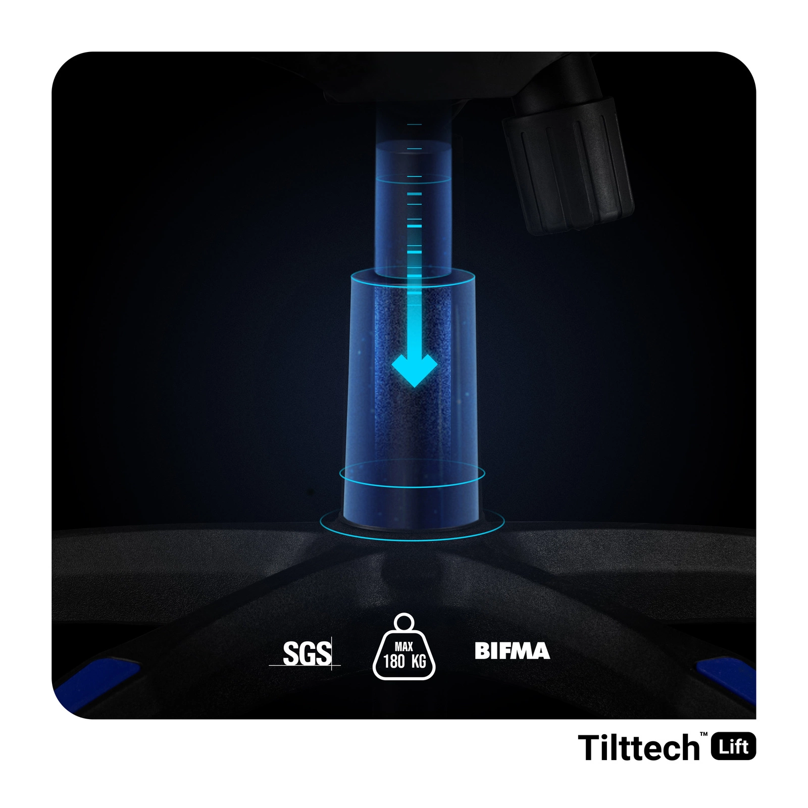 Aby jak najdokładniej wesprzeć postawę i ułatwić sylwetce przyjęcie ergonomicznej pozycji niezbędne jest precyzyjne dopasowanie wysokości siedziska do wzrostu oraz poziomu biurka. Niezawodna regulacja Tilttech™ Butterfly to gwarancja odpowiedniej pozycji, która pozwoli Ci jeszcze lepiej dopasować sylwetkę do poduszki lędźwiowej oraz zagłówka. System umożliwia dodatkowo relaksujące, bezpieczne bujanie z mechanizmem Tilttech™ Swing, a oparcie posiada funkcję rozłożenia nawet do 140° i zablokowania w dowolnym miejscu nachylenia.