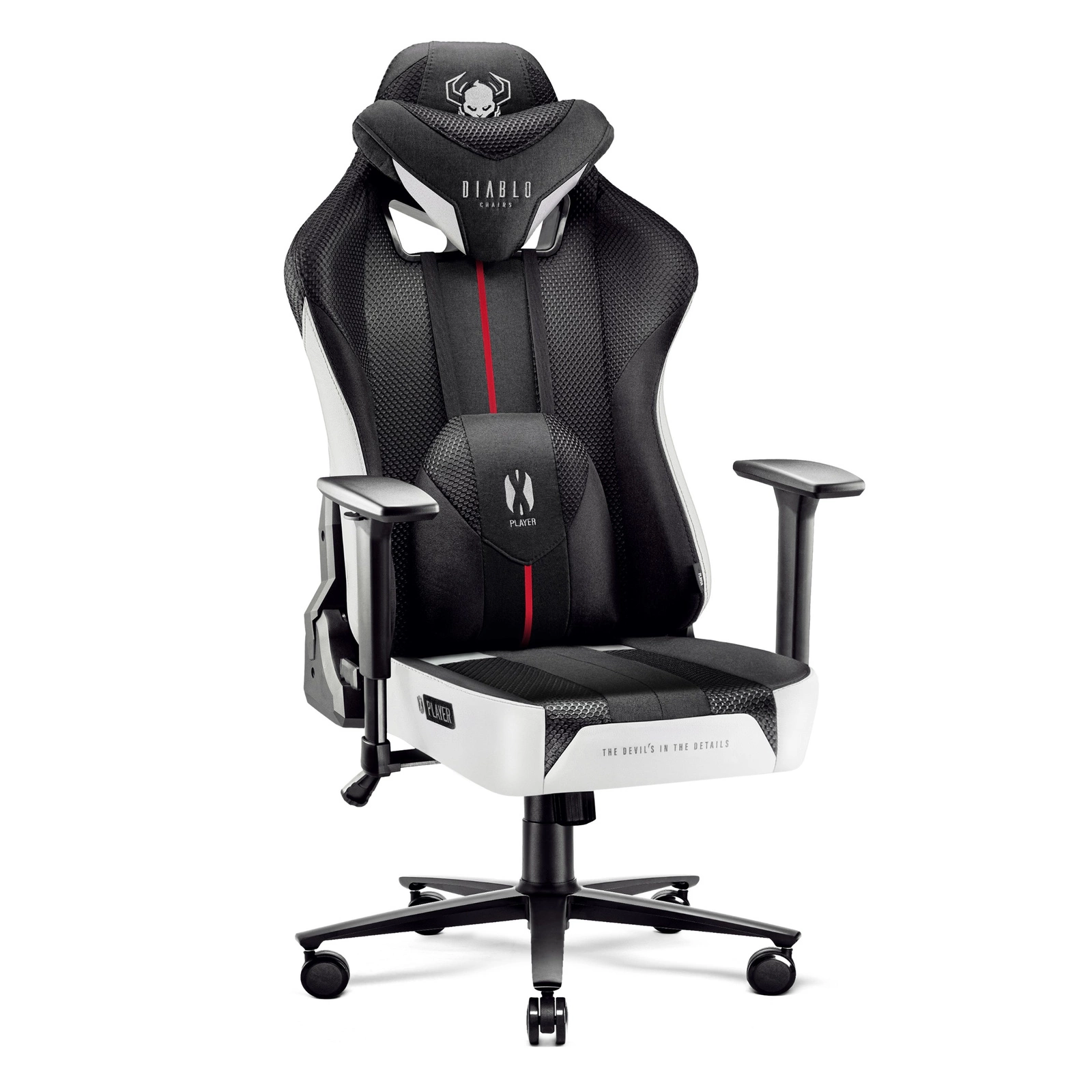 Fotel gamingowy Diablo X-Player 2.0 materiałowy King Size: Biało-czarny