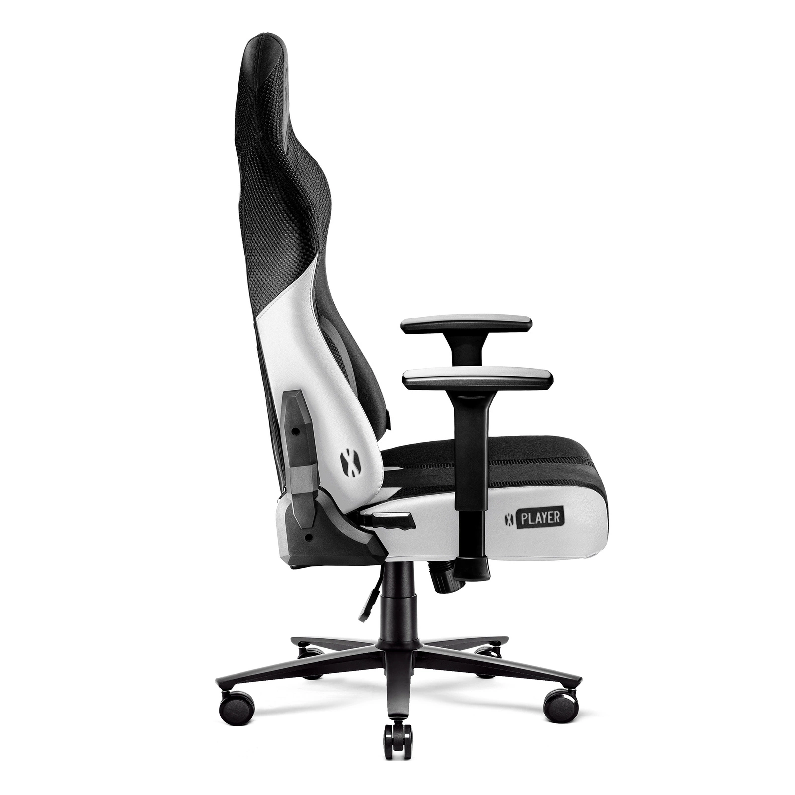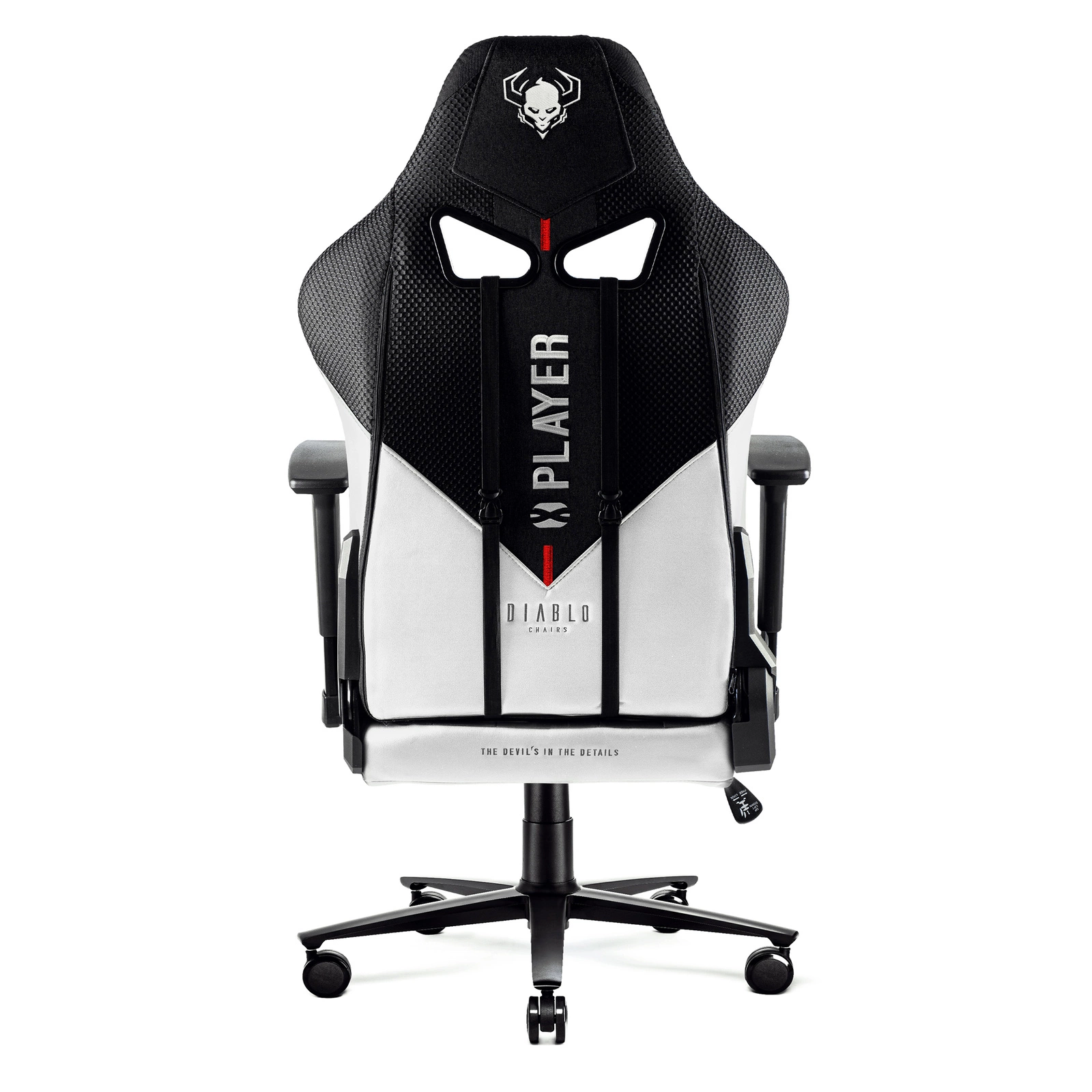 Oto fotel gamingowy Diablo X-Player w wyrazistej, biało-czarnej odsłonie - doskonałe rozwiązanie dla każdego, kto spędza długie godziny grając, pracując bądź ucząc się przy biurku.