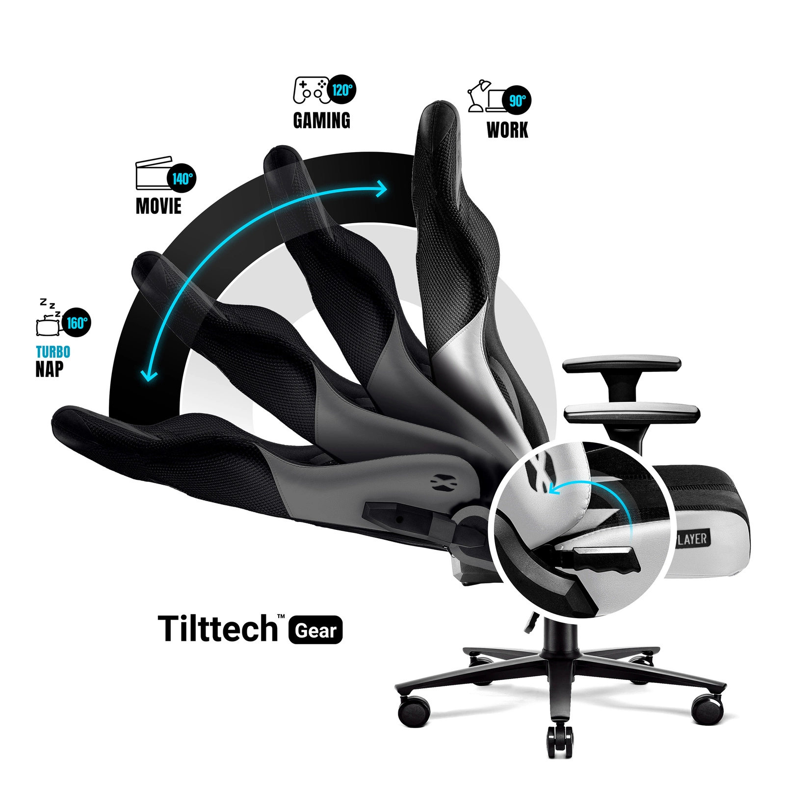 - Wbudowany mechanizm Tilttech™ Swing daje możliwość relaksującego bujania się w fotelu, a system Tilttech™ Gear pozwala na dopasowanie kąta nachylenia oparcia. Czeka Cię jeszcze więcej komfortu!