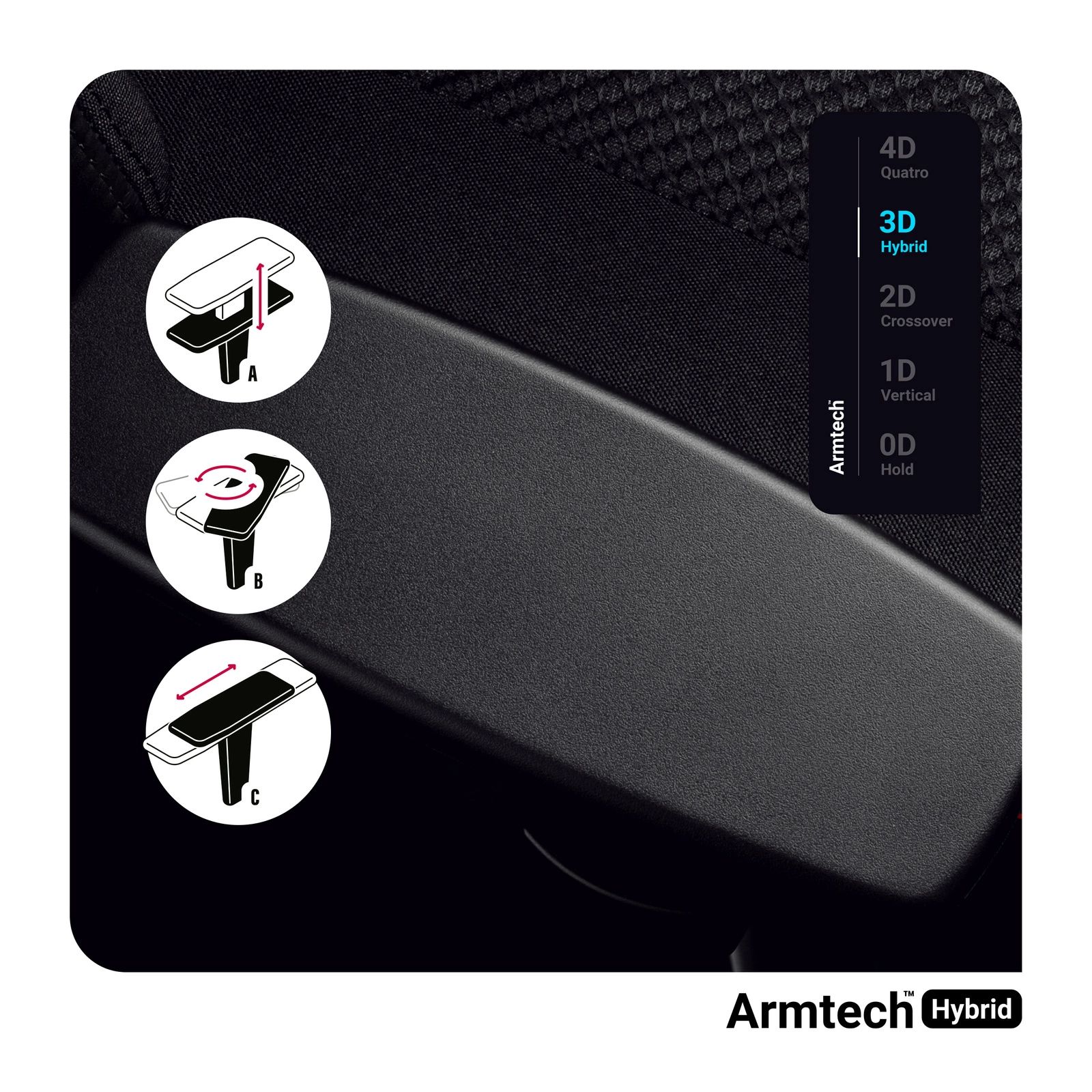 - Pokryte miękką pianką podłokietniki Armtech™ Hybrid SoftTouch w aż trzech płaszczyznach dopasujesz do swojego wzrostu czy długości rąk. Właściwa regulacja zapewni Ci wygodę, wesprze Twoje barki, przedramiona i nadgarstki oraz ustabilizuje całą sylwetkę.