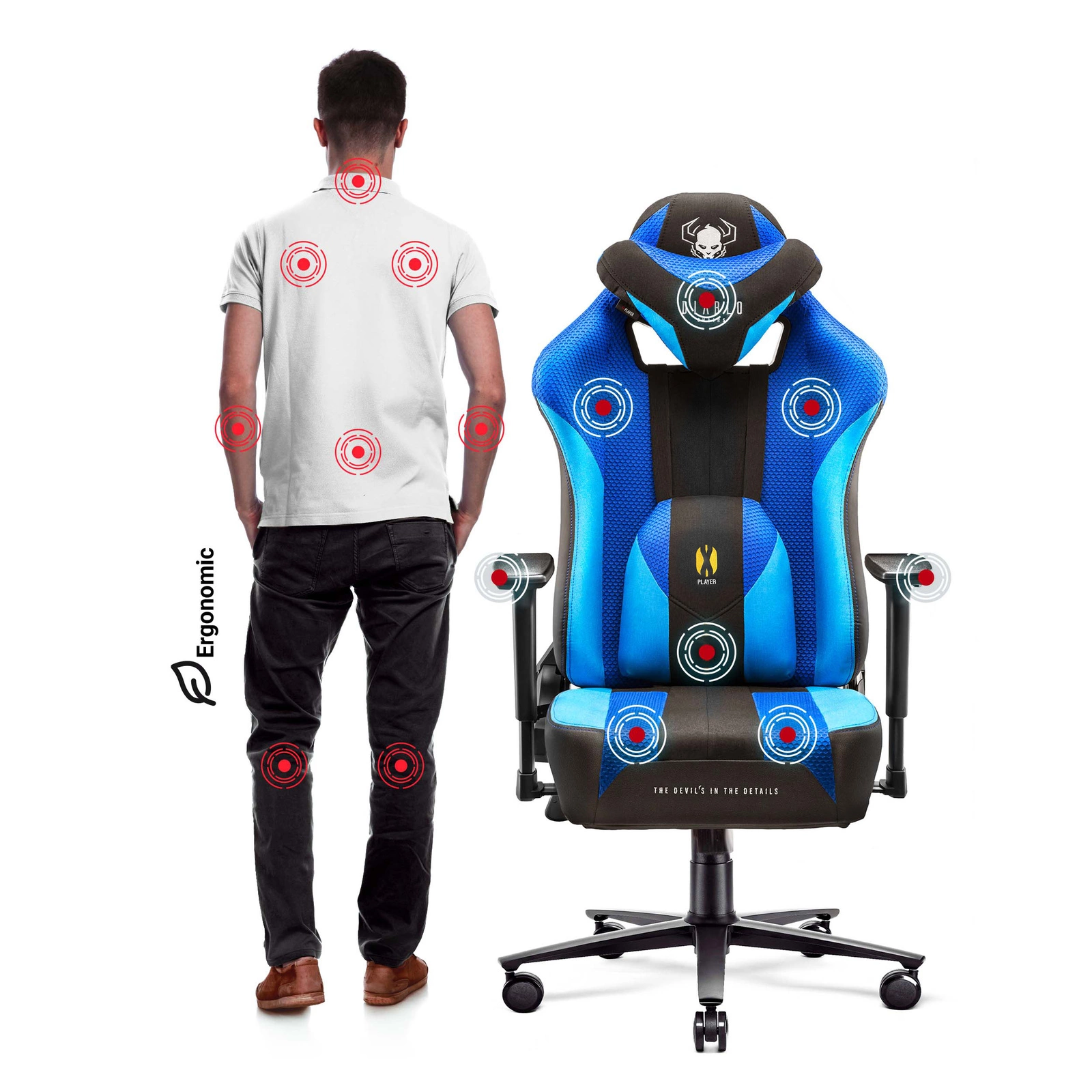 Nawet najdłuższy maraton gamingowy może być komfortowy, bezpieczny i jeszcze bardziej emocjonujący. Oto zupełnie nowy gracz w drużynie foteli gamingowych Diablo: X-Player w unikatowej, czarno-niebieskiej odsłonie.