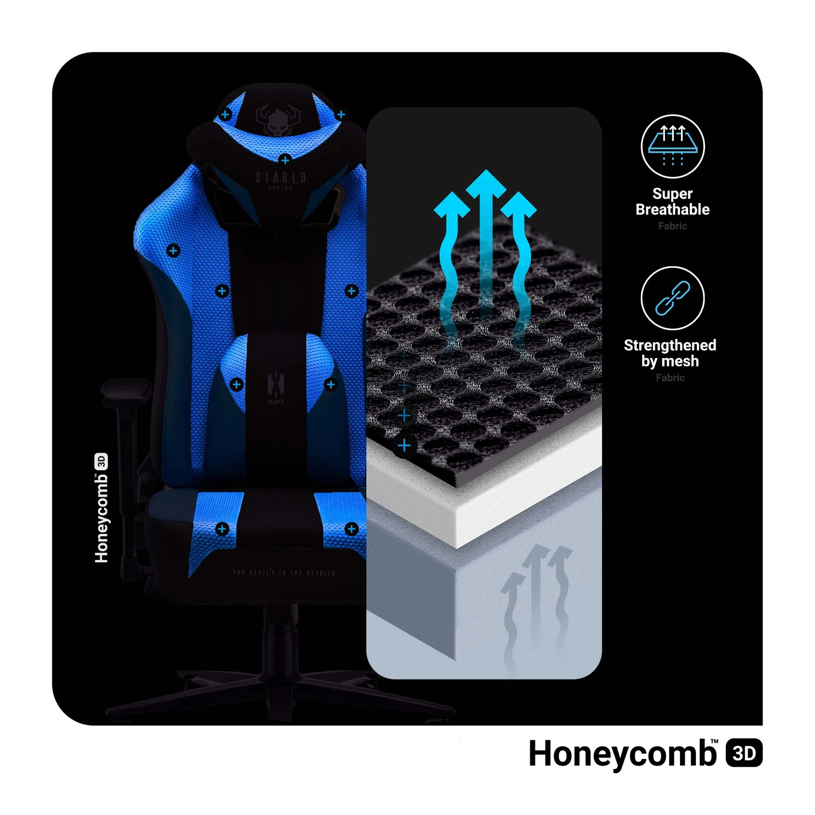 Najwyższa jakość wykorzystanych materiałów oraz mocne przeszycia Nylon™ LV3 to gwarancja, że model X-Player będzie towarzyszyć Ci w codziennych rozgrywkach przez długie lata. Materiał EcoFiber™ oraz siateczka Diablo Honeycomb™ o oddychającej strukturze plastra miodu to tkaniny mocne, wytrzymałe i odporne na przetarcia, które zapewniają dodatkowo niezbędną cyrkulację powietrza.