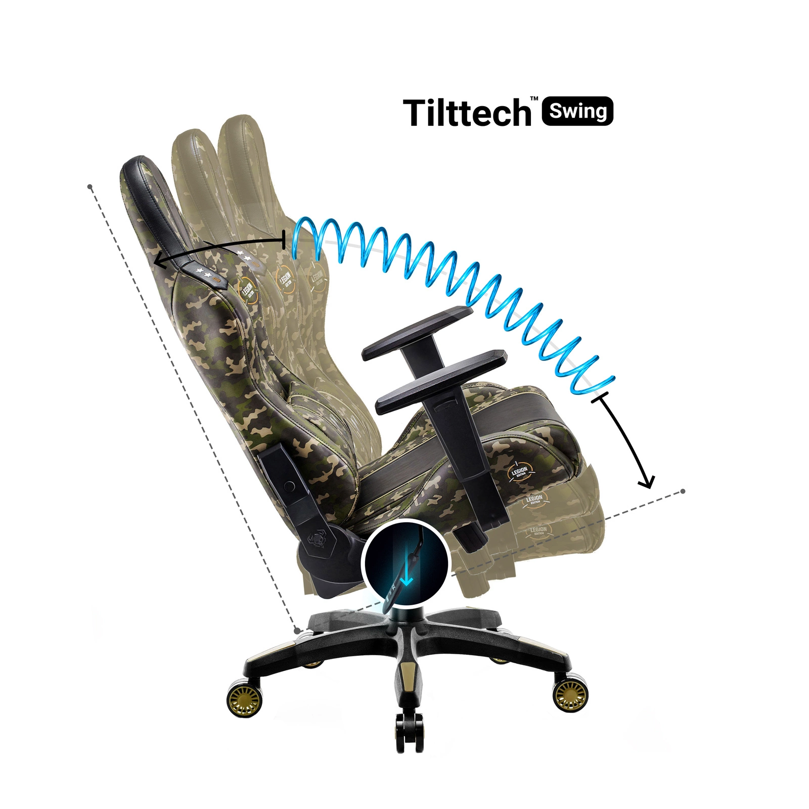 Wszyscy mali gracze uwielbiają funkcję przyjemnego i bezpiecznego bujania, którą gwarantuje system Tilttech™ Swing. Oparcie może zostać rozłożone i zablokowane w dowolnym punkcie dzięki mechanizmowi Tilttech™ Gear.