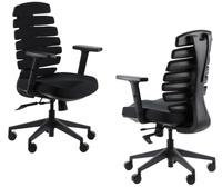 - Podłokietniki zintegrowane z ramą, otwarte do tyłu, metalowe posiadają nakładki z czarnego polipropylenu