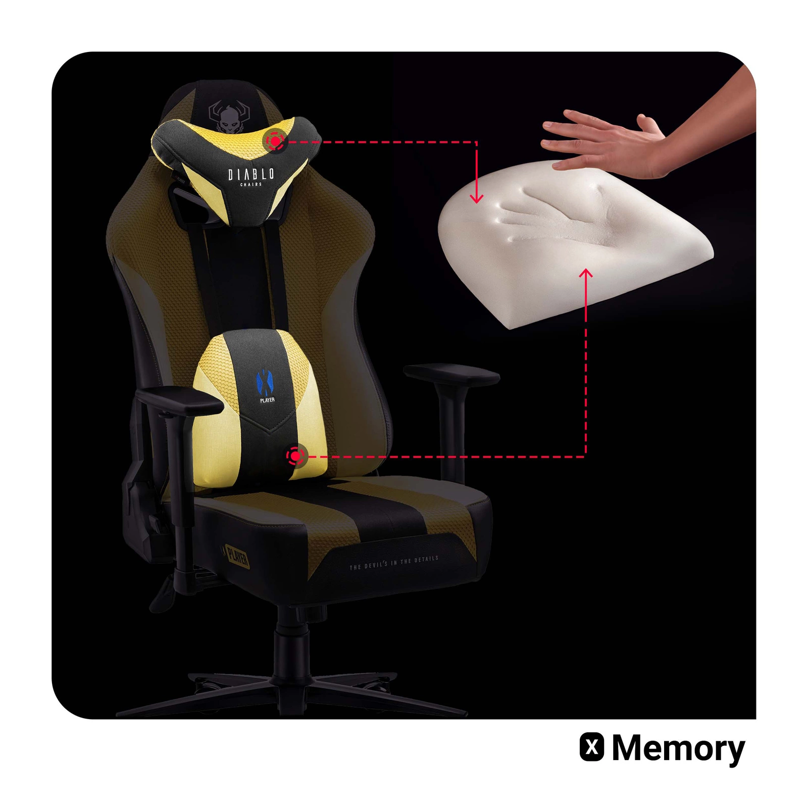 Bezpieczeństwo to podstawa, dlatego oparcie X-Playera zyskało dwie wyprofilowane poduszki wypełnione sprężystą pianką. Zagłówek stanowi ergonomiczną podporę dla pleców w szyjnym odcinku, zapobiegając szkodliwemu pochylaniu się. Poduszka lędźwiowa sprawi, że Maluch zyska bezpieczne ustawienie kręgosłupa w dolnej jego części, co zapobiegnie powstawaniu bądź pogłębianiu się wad postawy.