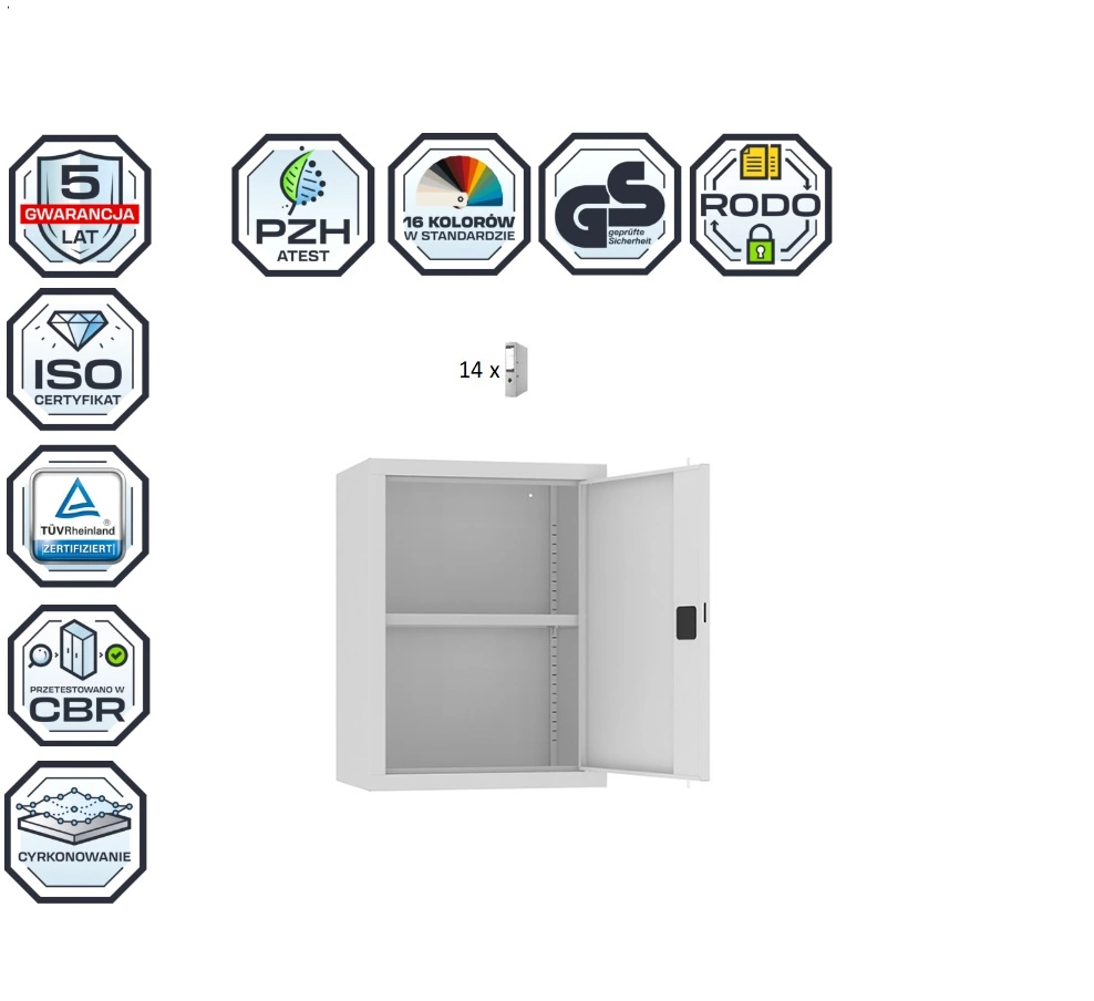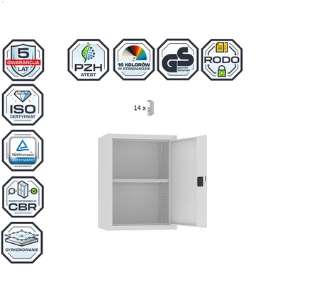 Nadstawka SBM 801 na szafę aktową – 600 mm. Pomieści 14 segregatorów, kolor : RAL 7035 – jasnoszary. Szafa zgodna z wytycznymi RODO.