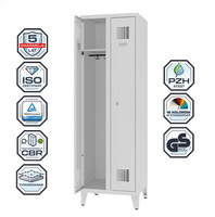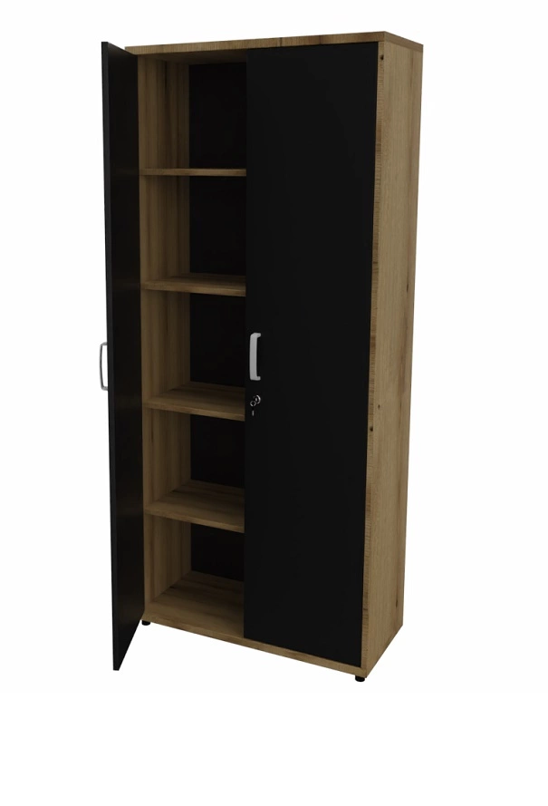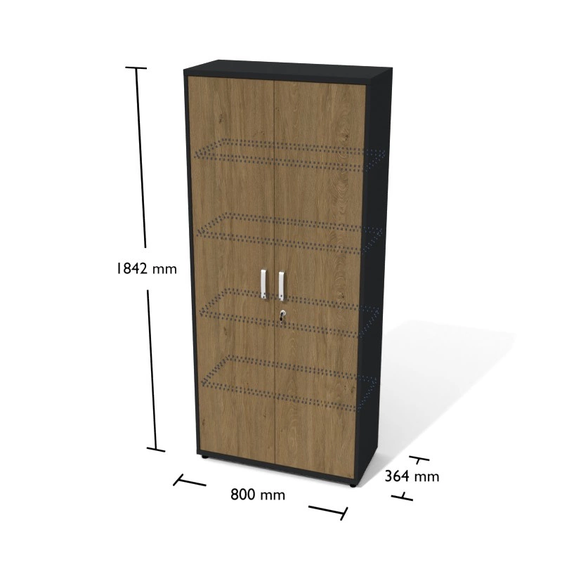 Regał wysoki (1842 mm), drzwi wpuszczane. Podzielony jest półkami na 5 przestrzeni (OH) o wysokości segregatora, dodatkowe nawierty umożliwiają zmianę wysokości każdej półki w 5 położeniach.