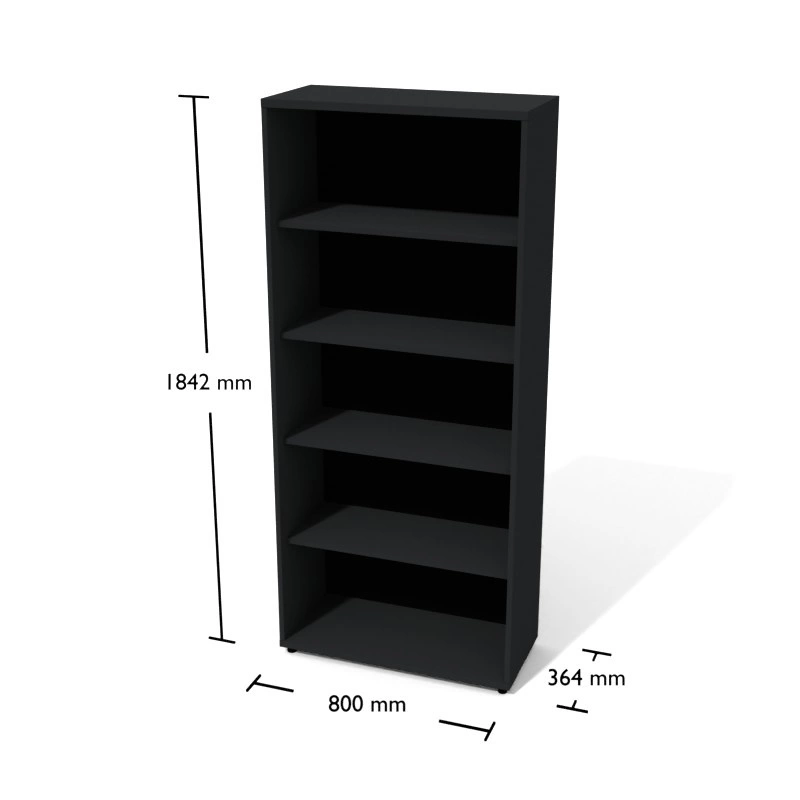Regał wysoki (1842 mm), otwarty. Podzielony jest półkami na 5 przestrzeni (OH) o wysokości segregatora, dodatkowe nawierty umożliwiają zmianę wysokości każdej półki w 5 położeniach.