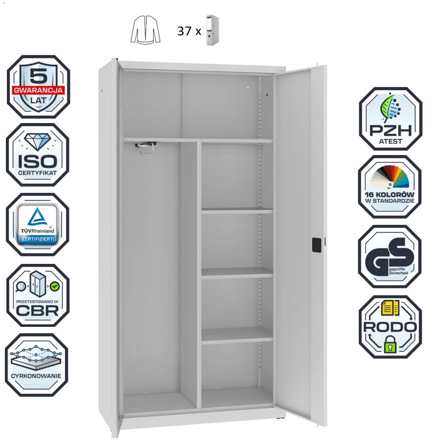 Szafa aktowo ubraniowa SBM 206 – 1000 mm, pomieści 37 segregatorów, kolor : RAL 7035 – jasnoszary. Szafa zgodna z wytycznymi RODO RODO.