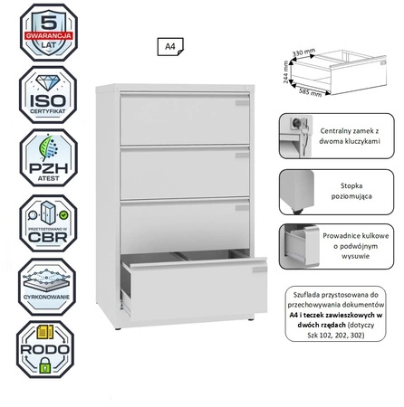 Szafa kartotekowa SZK 302 na format A4 poziomo kolor : RAL 7035 – jasnoszary