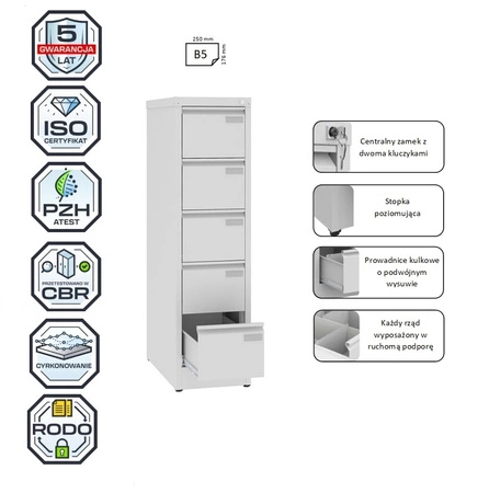 Szafa kartotekowa SZK 318/1/5 na format B5 poziomo kolor : RAL 7035 – jasnoszary