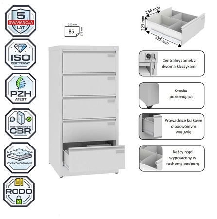Szafa kartotekowa SZK 318 na format B5 poziomo kolor : RAL 7035 – jasnoszary