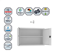 Szafka śniadaniowa metalowa wisząca SUS 225 dziesięcio-skrytkowa z daszkiem bardzo dobrze sie sprawdza w stołówkach szkolnych, pracowniczych, bufetach jak również do przechowywania rzeczy osobistych pracowników. W ścianach bocznych otwory do skręcania szafek zesobą. Drzwi gładkie z wizytownikiem, zamykane na zamek cylindryczny z 2 kluczami