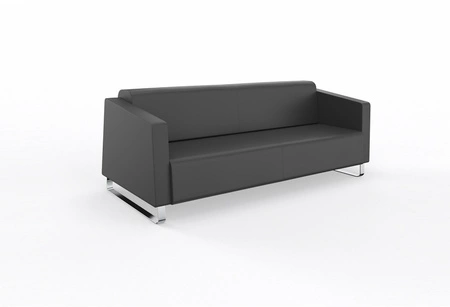 - Eko skóra w kolorze grafitowym/podstawa płozy stal chromowana. Na sofie komfortowo usiądą 3 osoby.