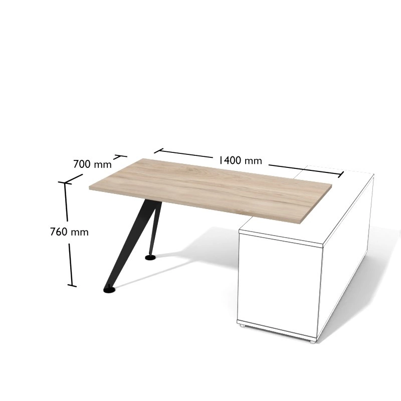 Zestaw biurko XAR-Vn3-7 - szer 1400 gł 700 wys 760 mm , blat gr 25 mm w kolorze Rockford jasny/ stelaż metalowy Grafit z pomocnikiem P2 szer 1400 gł 500 wys 650 mm