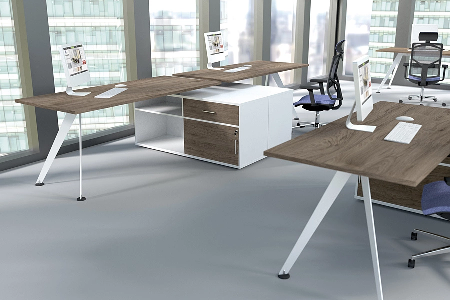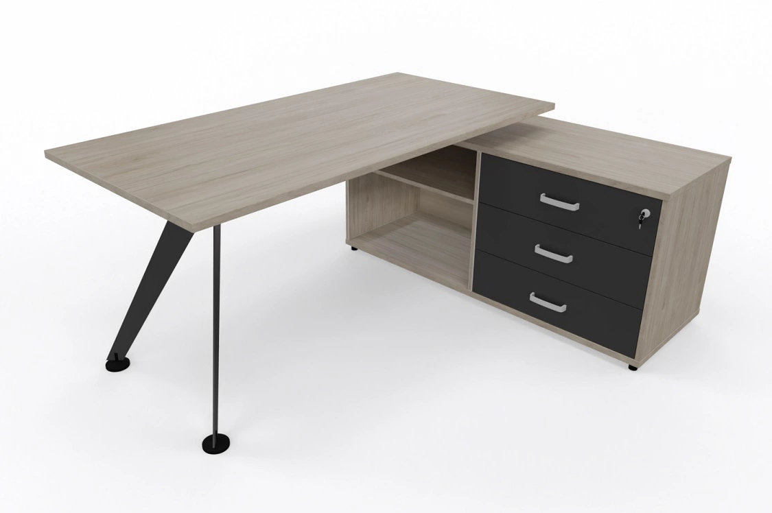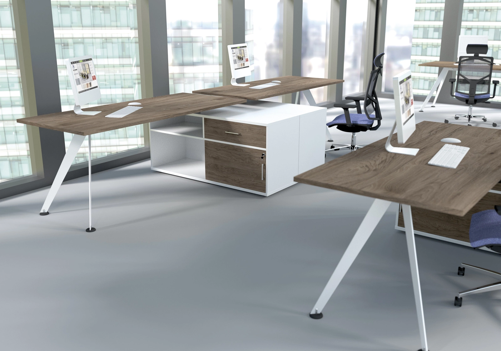 - Designerskie biurko z podporami w ksztalcie litery V z szafką pomocniczą. Proponujemy do wyboru 12 kolorów blatu w gr 25 mm oraz 2 kolory stelaża biały lub grafitowy bez dopłaty !
