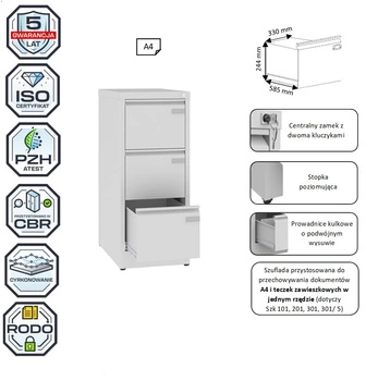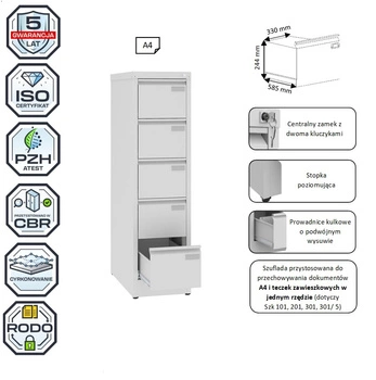 Szafa kartotekowa SZK 301/5 na format A4 poziomo kolor : RAL 7035 – jasnoszary