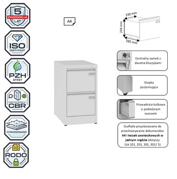 Szafa kartotekowa SZK 302 na format A4 poziomo kolor : RAL 7035 – jasnoszary