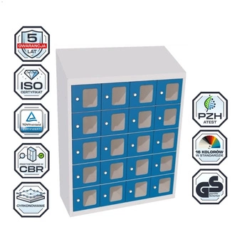 Szafka śniadaniowa 20 skrytek wisząca SUS 245 WP z drzwiczkami z plexiglasu – 810 mm kolor : RAL 7035 – jasnoszary