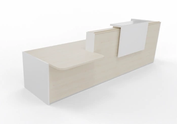 lada do recepcji TERA z niższym modułem- szer 3456 gł 1120 wys 1159 mm, w kolorze Brzoza Polarna z elementami Pastelowej Bieli